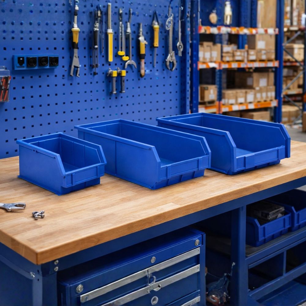 Le GRAB est conçu pour ça. Bec ouvert à l’avant, contenu visible sans manipulation, accès immédiat même les mains chargées. Sur une ligne de montage, dans un atelier, le long d’un rack — le GRAB transforme n’importe quel poste de travail en zone de picking efficace.